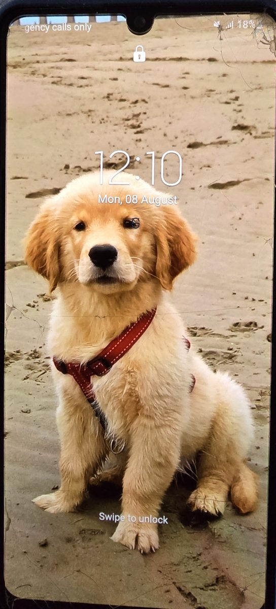 1 SAMSUNG-Handy mit Schutzhülle und Klett fürs Cockpit und süssem Hund als Startfoto